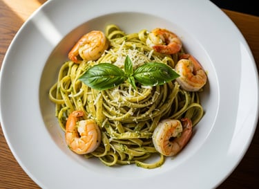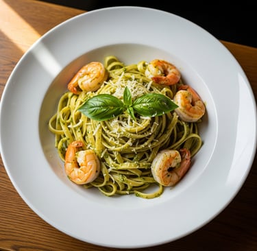 5 - RITA - FETTUCINE AL PESTO DE MANJERIÃO E CAMARÕES