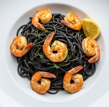 6 - MARINA - SPAGHETTI AL NERO (C/ TINTA DE LULA) E CAMARÕES